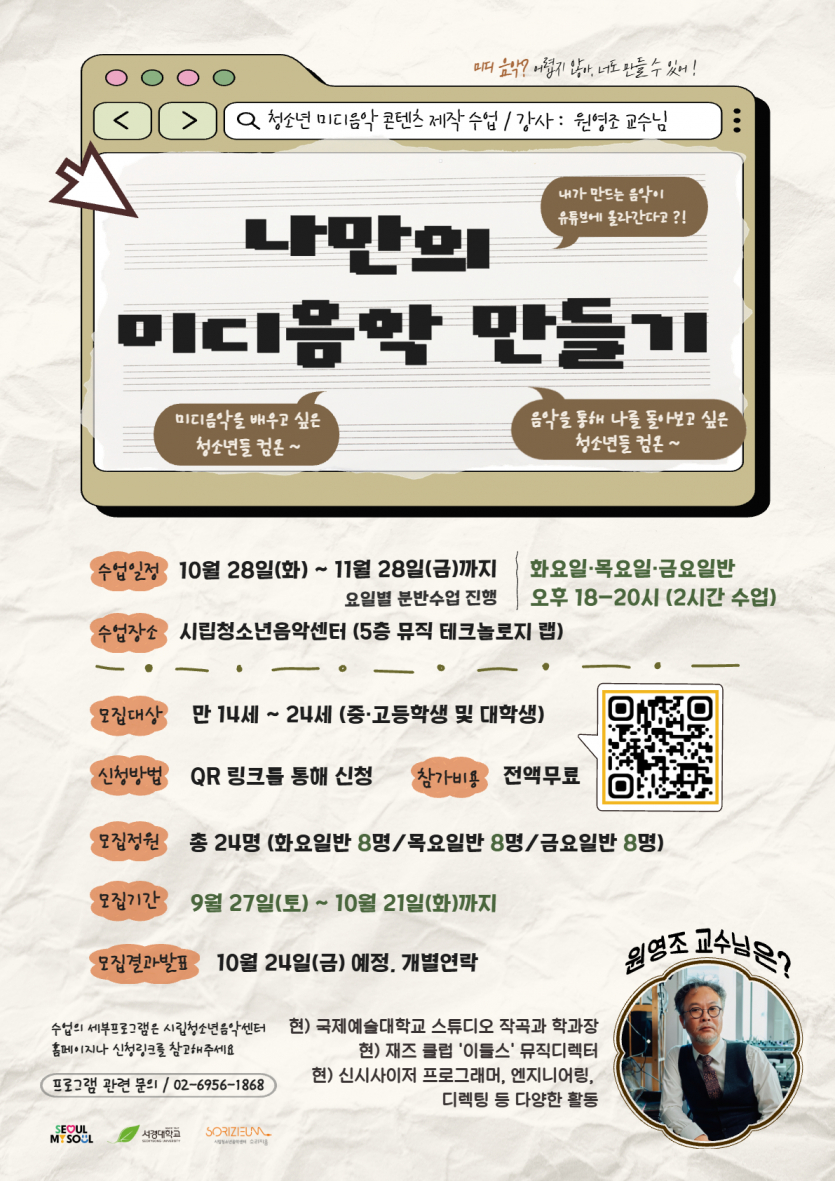 . 모집대상 : 음악(제작)에 관심있는 만 14 ~ 24세 청소년(24명 내)