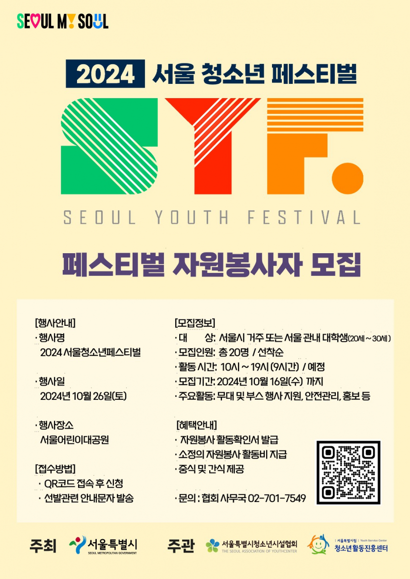 [공지] 2024 서울 청소년 페스티벌 SYF 페스티벌 자원봉사자 모집
