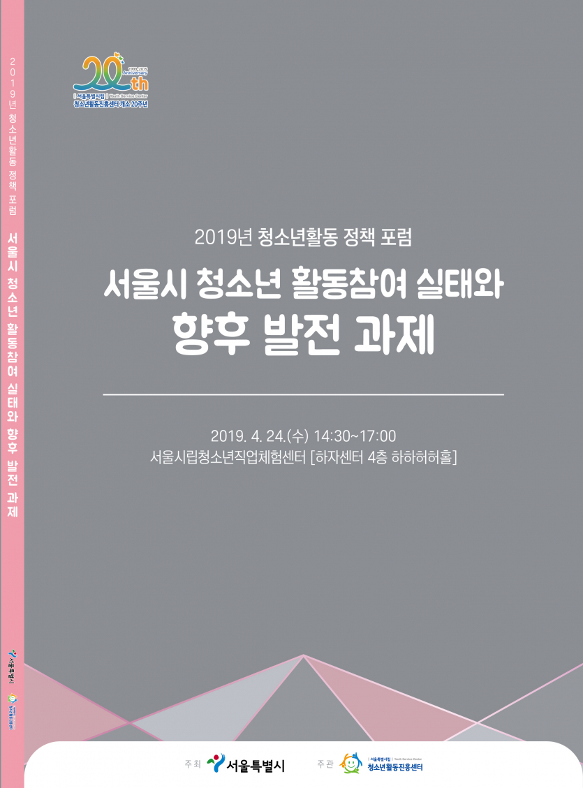 2018청소년활동 참여 실태 및 요구조사」  결과를 토대로 향후 청소년활동의 지향점과 정책 방향을 모색하기 위하여 마련된 2019년 청소년활동 청책포럼 자료집