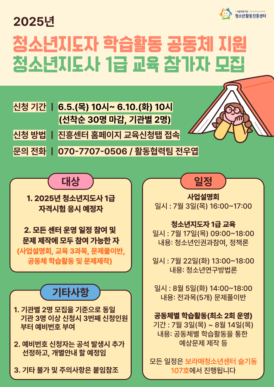 [교육] 2025년 청소년지도자 학습활동 공동체 지원(청소년지도사 1급 교육) 참가자 모집